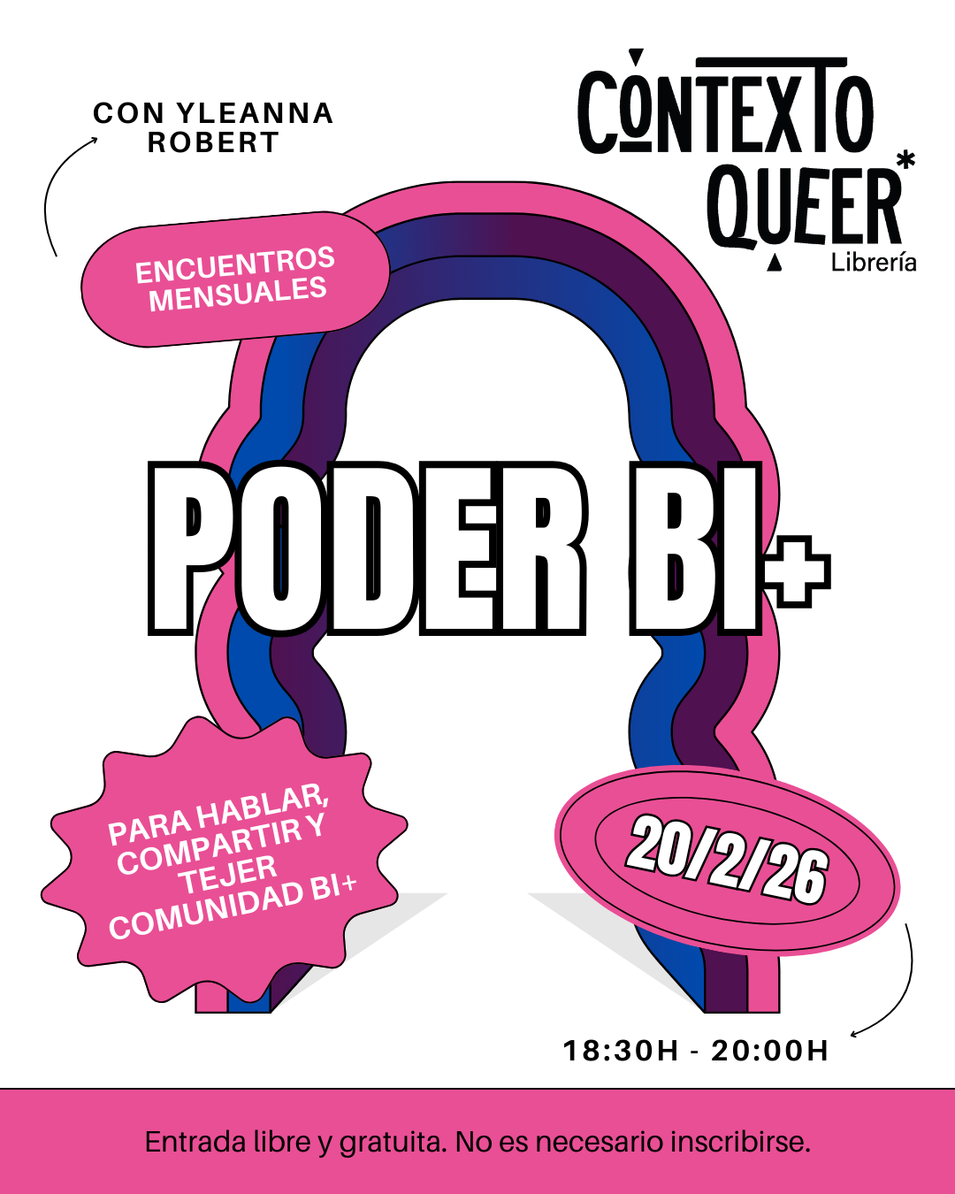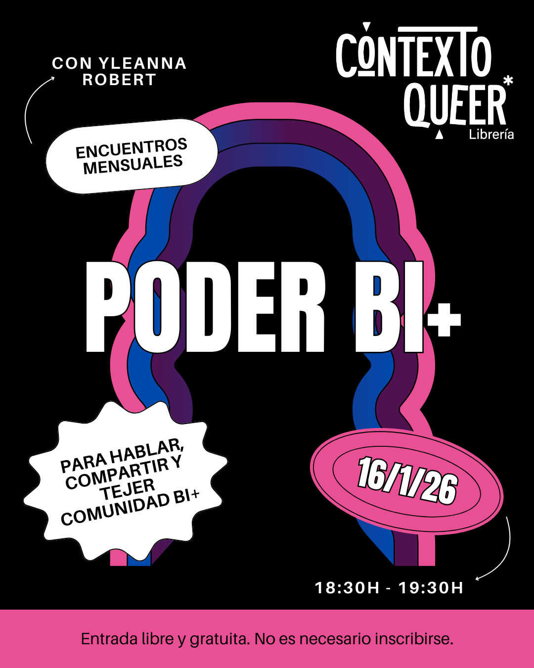 Encuentro mensual para hablar, compartir y tejer comunidad bi+. Entrada libre y gratuita. No es necesario inscribirse.